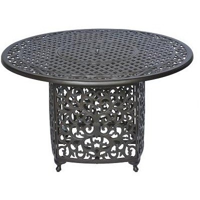- Cast aluminum table with fire pit center
